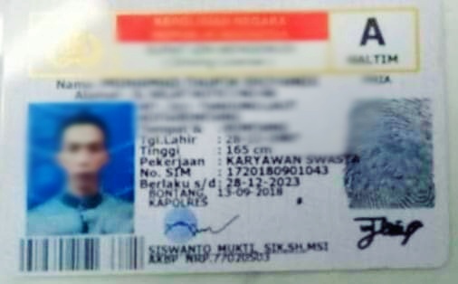 SIM tersebut menunjukkan identitas seorang pria berisinial MTE (32) yang berdomisili di daerah Tanjung Laut Bontang Selatan, dengan tinggi badan 165 cm.