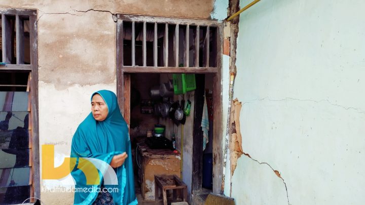 “Tidak tenang tidur kami, takut rumah roboh, Ini lantai baru kita perbaiki, karena retaknya parah,” ujarnya.