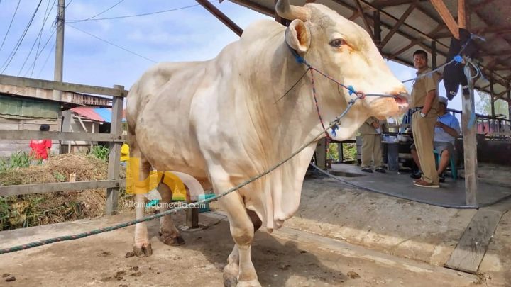 Di salah satu kandang pendagang sapi kurban, terdapat seekor sapi berukuran jumbo dengan berat hampir 1 Ton. Sapi potong berbadan besar dan berkulit putih tersebut merupakan sapi Simental, mirip dengan sapi Limosin.