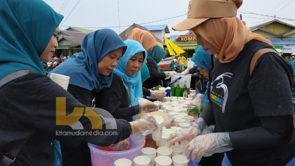 KLAUSANEWS, Bontang– Salah satu rangkaian HUT ke-20 Kota Bontang diisi dengan pemecahan rekor muri minum es rumput laut sebanyak 10.020 gelas, Minggu(20/10) di perkampungan atas air Bontang Kuala.