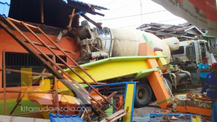 KLAUSANEWS, Bontang – Sebuah mobil truk molen pengaduk semen terperosok hingga menabrak gedung sekolah SDN 005 Bontang Selatan, pada Jumat (06/12/2019) sekira pukul 16.00 Wita. Akibatnya, dua ruangan yakni ruang rapat dan musala mengalami kerusakan. Begitu pun dengan pagar sekolah yang juga ikut ambruk.