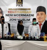 Dihari yang sama namun di tempat terpisah, Petahana, Neni Moerniaeni bersama rombongannya juga melakukan aksi pencegahan penyebaran Covid-19, dengan menyemprot disinfektan di beberapa tempat ibadah baik masjid maupun gereja, salah satunya masjid raya Al Hijrah, Kelurahan Tanjung Laut, Bontang Selatan.