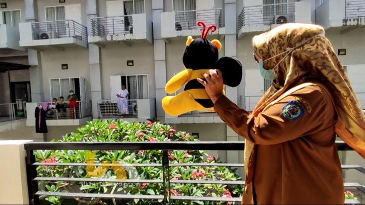 “Ya kita kesini kasih semangat, sambil bawa mainan untuk anak-anak. Insya Allah 14 hari bisa pulang ke rumah,” ujar Wali Kota Neni Moerniaeni.