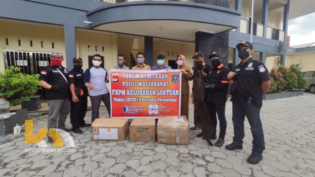 KLAUSANEWS, Bontang – Forum Kemitraan Polisi dan Masyarakat (FKPM) Loktuan bersama Bhabinkamtibmas Loktuan menyerahkan bantuan 100 lembar Alat Pelindung Diri (APD) berupa baju hazmat bagi tim medis Bontang.