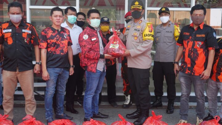 Paket Sembako diserahkan oleh Kapolres Bontang AKBP Boyke Karel Wattimena kepada Ketua MPC Pemuda Pancasila Kota Bontang yang juga Ketua DPRD Kota Bontang Andi Faisal Sofyan Hasdam di Sekretariat Pemuda Pancasila Kota Bontang Jalan MH Thamrin Kelurahan Bontang Baru, Kecamatan Bontang Utara.