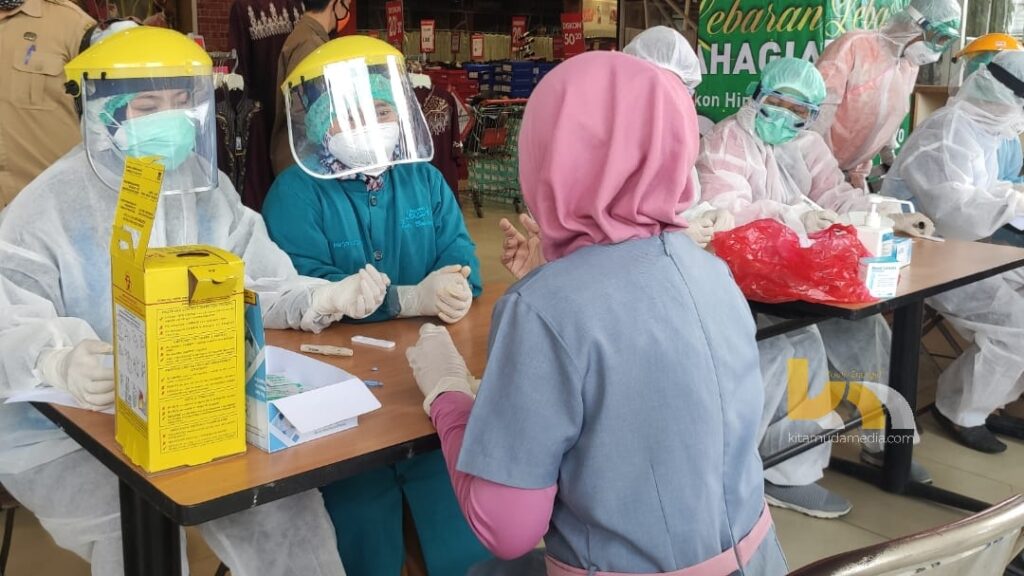 KLAUSANEWS, Bontang – Rapid massal juga menyasar pusat perbelanjaan Ramayana, Selasa (19/5/2020). Petugas yang menggunakan APD disiagakan di pintu masuk, didampingi sejumlah aparat Satpol PP, polisi dan TNI.