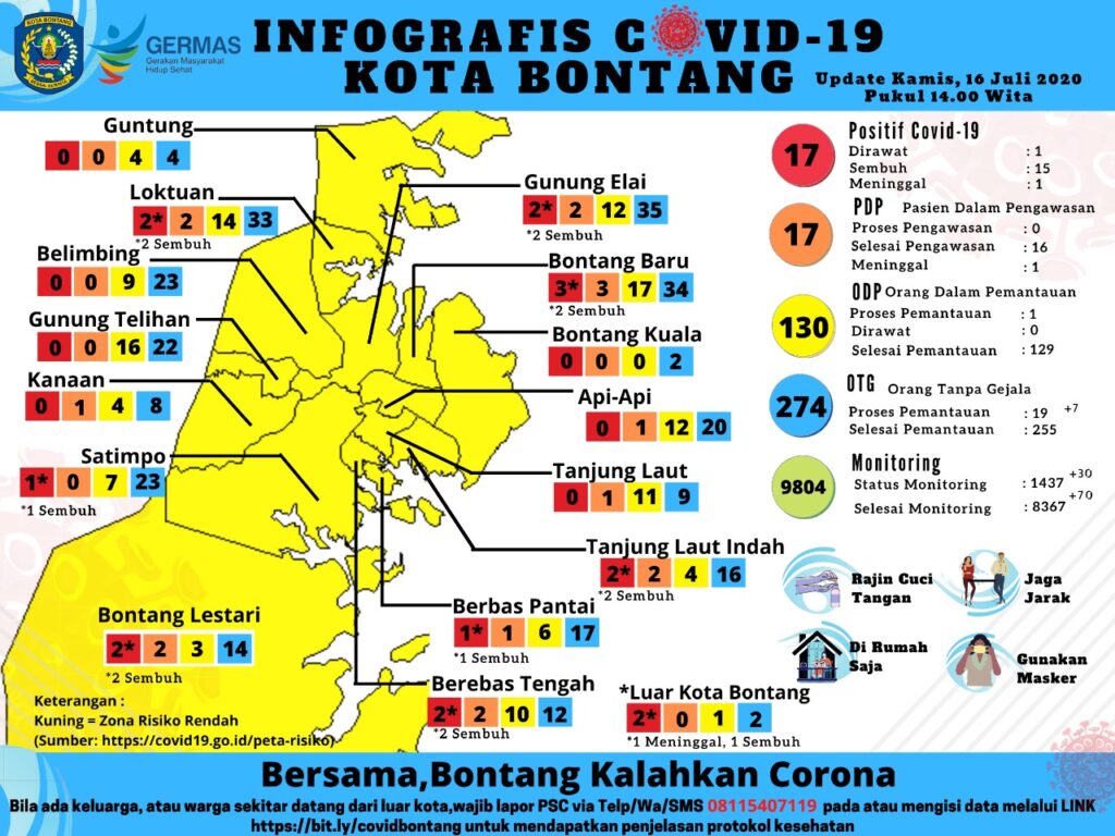 Sebelumnya pada Selasa (14/7/2020) Tim Gugus Percepatan Penanganan Covid-19 Kota Bontang kembali mengumumkan adanya 1 orang terkonfirmasi positif corona.