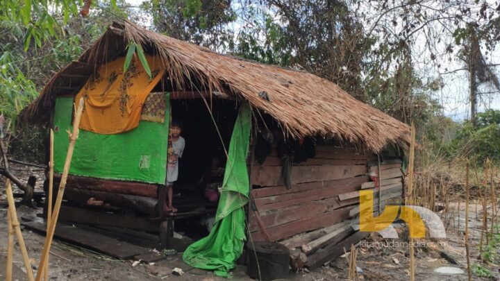Gubuknya beratap rumbia. Tak dapat menahan air ketika hujan. Pun tak ada dinding penahan angin. Hanya kayu tipis seadanya. Mereka tinggal di sebuah ruangan, digunakan untuk tidur, makan, dan juga sebagai ruang tamu. Lantainya pun masih beralaskan tanah. Ada satu ruangan kecil lagi, digunakan sebagai kamar mandi dan dapur. Kondisinya, tak kalah memprihatinkan. Belum diberi atap sama sekali. Pintunya pun hanya ditutupi terpal.