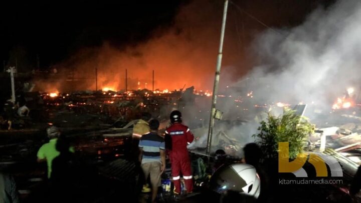 KLAUSANEWS, Bontang – Kebakaran hebat kembali terjadi di pemukiman atas air Bontang Kuala, Selasa (13/10/2020) sekira pukul 19.20 Wita. Sejumlah bangunan terdiri dari cafe dan rumah warga hangus terbakar.