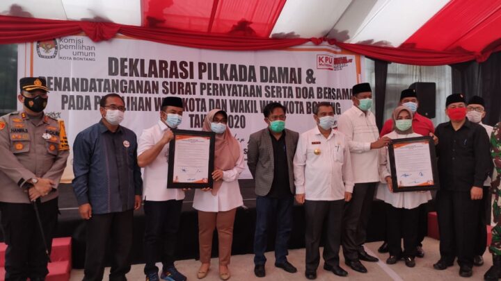Deklarasi damai sekaligus penandatanganan komitmen bersama yang dilakukan oleh kedua paslon dan ketua tim kampanye, juga diisi dengan doa bersama, guna menyukseskan pelaksanaan pesta demokrasi lima tahunan tersebut.