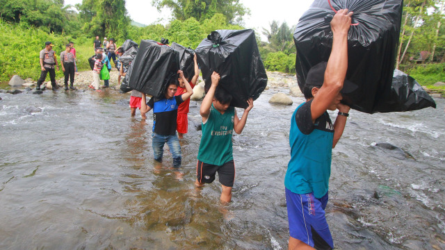 “Medan yang terkadang landai kemudian disambut jalanan terjal dan mendaki serta menyeberangi sungai yang cukup lebar dan arus yang deras semoga tidak menyurutkan bagi tim pengamanan logistik,” jelas Danang.