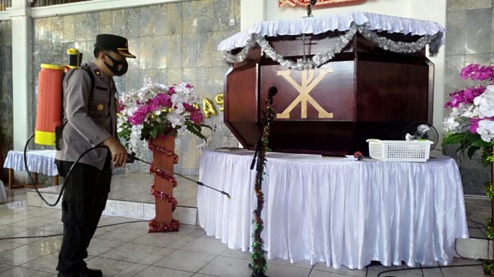 KLAUSANEWS, Bontang – Jelang perayaan ibadah natal, 40 gereja di Bontang disemprot disinfektan. Sebagai upaya pencegahan penyebaran Covid-19 selama pelaksanaan ibadah.