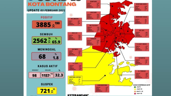 KLAUSANEWS, Bontang – Dinas Kesehatan Kota Bontang kembali merilis perkembangan kasus Covid-19 di Kota Taman, per hari ini, Jumat (05/02021).