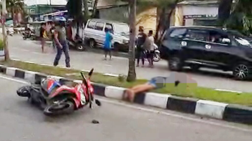 Dari video amatir warganet, korban dua orang laki – laki nampak luka parah dan terkapar tak berdaya. Sementara motor rusak parah.