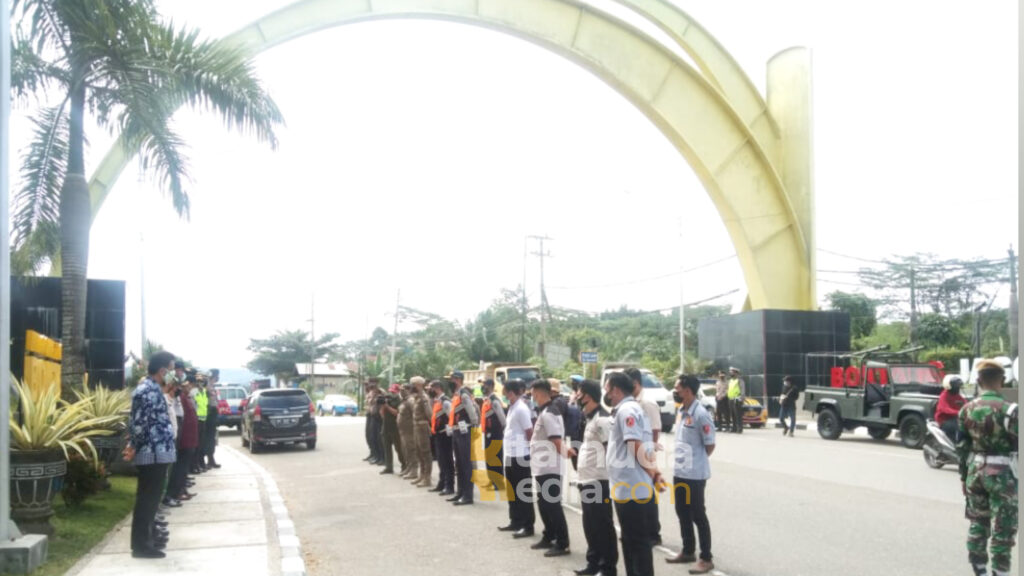 KLAUSANEWS, Bontang – Jajaran unsur Forum Komunikasi Pimpinan Daerah (Forkopimda) Bontang, gelar simulasi penyambutan Basri-Najirah, di Tugu Selamat Datang Bontang, Kamis (22/4/2021).