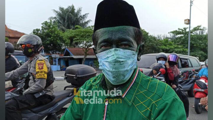 KLAUSANEWS, Bontang – Seluruh wajahnya dicat hijau, lengkap dengan seragam kebanggaan Partai Kebangkitan Bangsa (PKB), ditambah bawahan sarung yang juga bernuansa hijau, Safi’i turut mengiri konvoi pasangan Wali Kota dan Wakil Wali Kota Bontang, Basri Rase dan Najirah yang diarak keliling Kota Taman, usai dilantik, Senin pagi (26/04/2021).