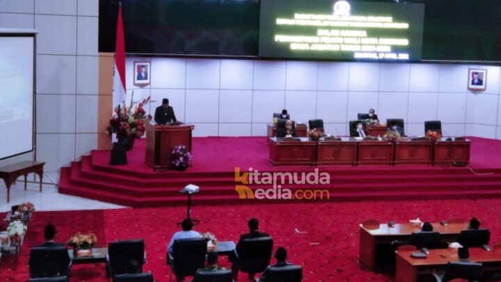 KLAUSANEWS, Bontang – Rapat paripurna ke 5 masa sidang III Dewan Perwakilan Rakyat Daerah Kota Bontang, yang digelar di sekretariat DPRD, Selasa (27/04/2021) dalam rangka penyampaian pidato Wali Kota Bontang masa jabatan tahun 2021-2024.