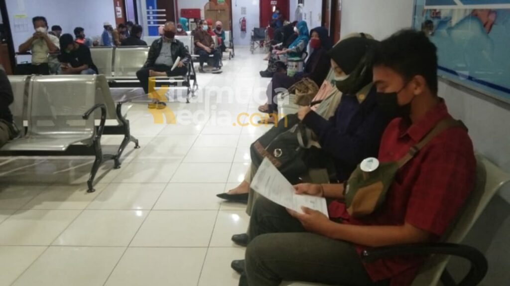 - Peserta mengambil nomor antrean terlebih dahulu sebelum ke loket registrasi.