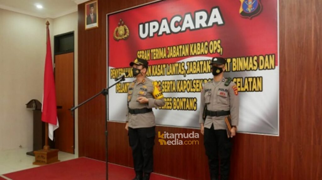 Upacara serah terima jabatan (sertijab) dipimpin langsung Kapolres Bontang AKBP Hanifa Martunas Siringoringo di Ruang rapat utama (Rupatama) lantai II Mapolres Bontang, Jumat (23/7/2021).