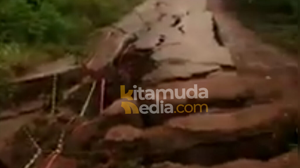 KLAUSANEWS, Bontang – Jalan poros Sangatta – Rantau Pulung, Kabupaten Kutai Timur), Provinsi Kaltim, rusak parah. Bagian tengah jalan terlihat amblas dan patah.