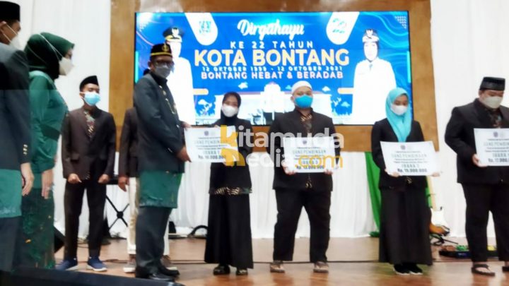 KLAUSANEWS, Bontang – Bertepatan Hari Ulang Tahun (HUT) ke 22 Bontang, Selasa 12 Oktober 2021. Pemerintah Kota (Pemkot) Bontang memberikan bonus uang pembinaan secara simbolis, kepada para peserta dan pelatih berpartisipasi yang telah mengharumkan nama Bontang pada pagelaran MTQ ke 42 tingkat Provinsi Kaltim, Juni lalu.