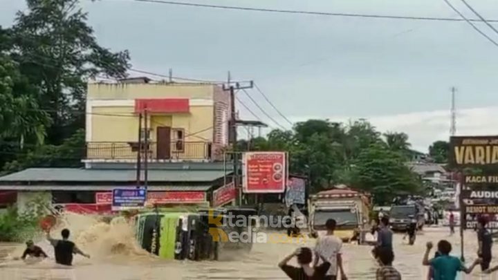 Terobosan Banjir, Truk Pengangkut Batu Bara Terguling