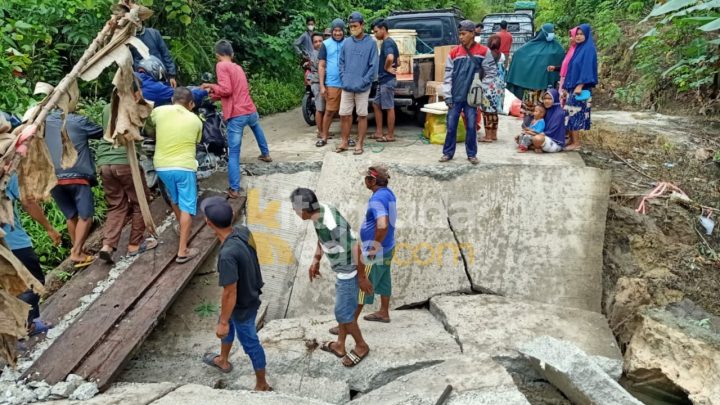 Dari video yang diterima awak media, diketahui kondisi badan jalan patah menjadi beberapa bagian, hingga membentuk cerukan menurun yang cukup tajam.
