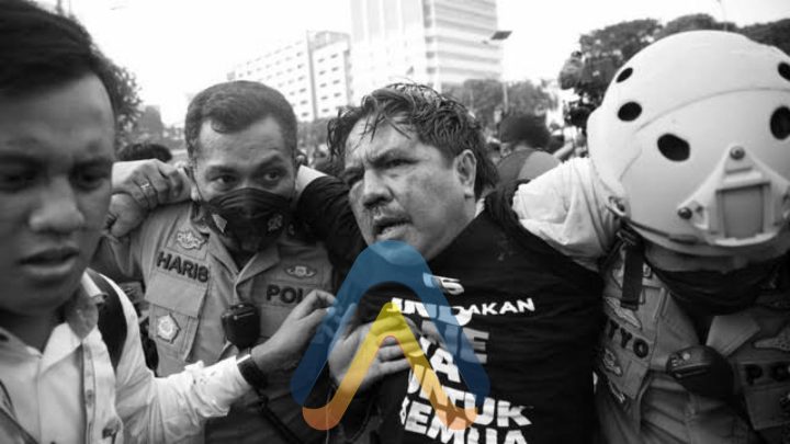 Tetapi seiring demo berjalan, Ade Armando diserang massa. Ade Armando terlihat menggunakan kaus hitam bertulisan ‘Pergerakan Indonesia untuk Semua’.