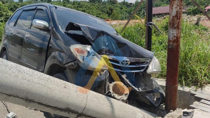 Mobil jenis Avanza dengan nomor polisi KT 1625 RC dari arah Sangatta menuju Bontang menabrak tiang listrik yang mengakibatkan kepala mobil tersebut ringsek.