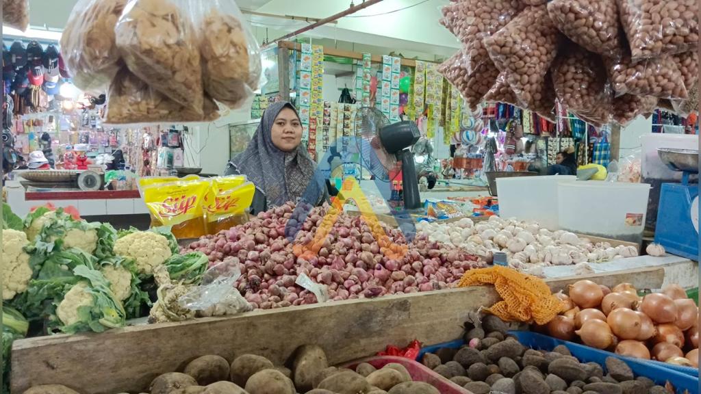 Pantauan Redaksi klausabontang.news di Pasar Rawa Indah, harga normal bawang merah biasanya Rp 35.000 – 40.000 per kilogram, naik menjadi Rp 75.000 per kilogram.