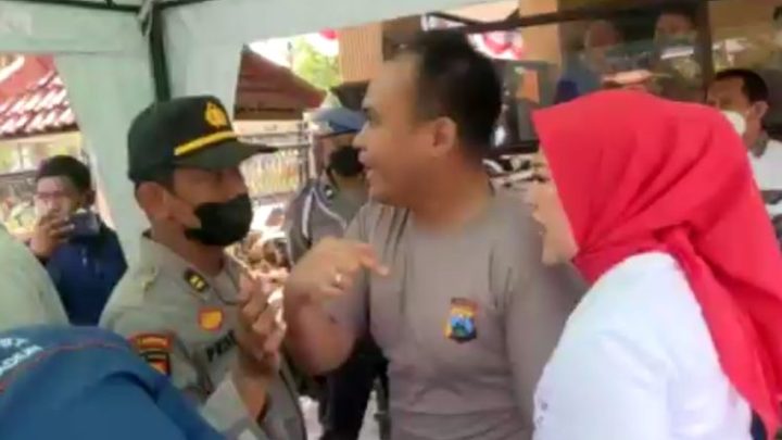Bahkan, Dwi membuka baju seragam dinasnya sambil bersuara keras membela istrinya.