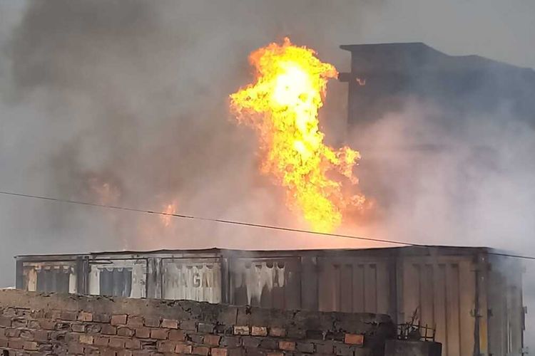 Aipda SF menyewakan lahan tanah miliknya untuk dijadikan gudang penimbunan solar ilegal hingga terjadi kebakaran di Kecamatan Kertapati Palembamg, Kamis (22/9/2022).
