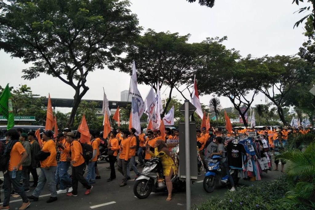 Setelah melakukan aksi di Istana Negara dan Gedung MK, para buruh selanjutnya akan bergeser ke Istora Senayan.