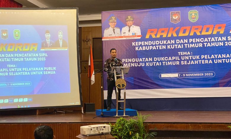 KLAUSANEWS, Kutai Timur – Dinas Kependudukan dan Catatan Sipil (Disdukcapil) Kabupaten Kutai Timur (Kutim) menggelar rapat koordinasi dengan camat dan kepala desa se-Kutim di Ball Room Senyiur Hotel, Samarinda,Selasa (7/11/2023) malam.