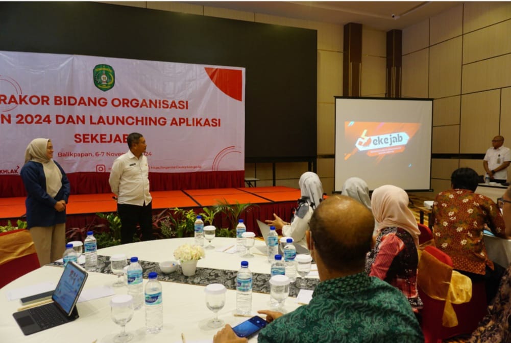 Bertempat di Grand Ballroom Hotel MAXONE Balikpapan, aplikasi SEKEJAB ini pun akhirnya resmi diluncurkan dalam Rakor bidang organisasi sekabupaten Kutai Kartanegara yang dipimpin oleh Asisten III bidang Administrasi Umum Pemkab Kukar, Dafip Haryanto pada 6/11/24 kemarin.
